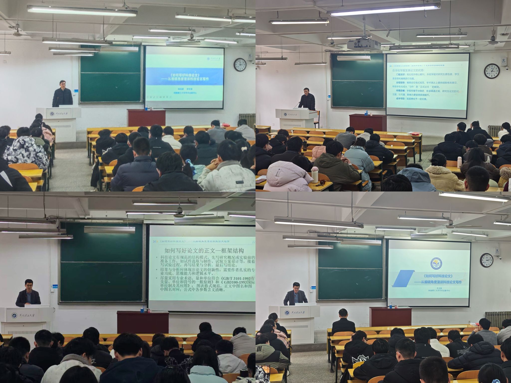 为切实提升研究生科技论文写作与发表能力,3月17日下午,色情av 在D201教室举办“如何写好科技论文”专题报告会。会议特邀《河南理工大学学报(自然科学版)》编辑部主任李文清、学校学术出版中心副主任、学报副主编杨延麟担任主讲,学院众多研究生代表到场学习。