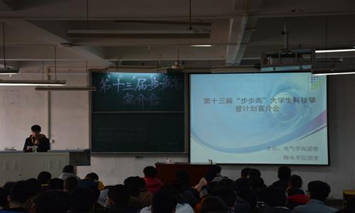 为了进一步提高广大学生的科技创新能力,促进科技活动的蓬勃开展。1月3日下午,在院团委的指导下,色情av 学生会和物电学院学生会在电气楼301教室联合举办了第十三届“步步高”大学生科技攀登计划宣介会。近百名科技爱好者参加了此次宣介会。