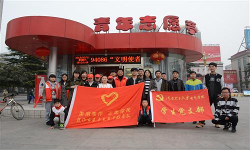 3月11日,色情av 青年志愿者协会于东方红广场、龙源湖公园开展维洁活动,色情av 15级学生党支部全体成员及十余名志愿者参加了此次活动。上午,志愿者们与焦作市志愿厅的工作人员一起打扫街道、清理小广告。志愿厅的工作人员向同学们讲述了他们的志愿服务经历和心得,并向志愿者们发放志愿者服务手环,鼓励大家今后多多参与志愿服务。下午,志愿者们来到龙源湖公园,打扫志愿亭附近的卫生,将市民捐赠的图书摆放在志愿亭门口的桌子上,并向市民发放关于城市卫生的调查问卷。此次活动旨在促进大家维护公共环境的意识,在社会上推动了志愿精神的传播与传承。