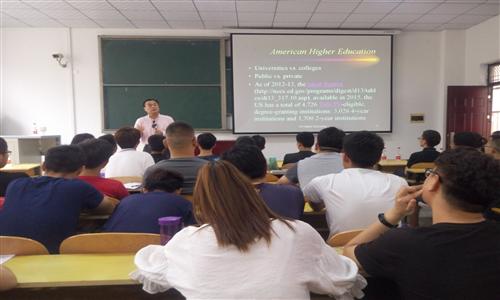 会上,王红教授从美国大学本科教学的课程安排、授课计划制定、学生成绩考核等方面介绍了美国大学本科教学模式,结合自己的经历与感受,谈了中美在大学教育方面的差异。他认为美方大学的四年毕业率仅有20%,六年毕业率为40%,课程考核采用多次考试、综合评价的方式,学生在课程学习期间始终存在压力,所以课程学习比较努力认真。刘丽萍教授通过图片展示的方式跟大家分享了她在北卡罗莱纳农工州立大学的工作和生活,现场的同学对学校的美景赞叹不已。几位13级留学毕业生通过自己制作的短片向大家展示了他们的留学生活及学习状况,并就留学方面为大家答疑解惑,现场气氛活跃。