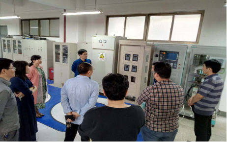 5月8日,河南天通电力有限公司总工程师李长江、职教站校长侯永刚、技术中心主任刘广朋一行三人来到色情av 开展科研技术交流。副院长郑征、钱伟,电力系、自动化系、交通系、电机系、测控系等系室负责人及教师代表参加交流座谈会。