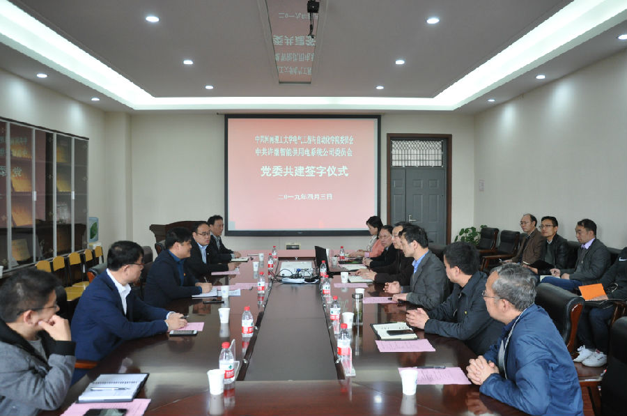 费树岷代表学院致欢迎辞。他首先感谢许继智能供用电系统分公司长期以来与学院建立的良好合作关系,以及在科研、人才培养等方面对学院给予的大力支持。他希望通过此次活动,以党委共建促进双方在科技转化、产品开发、和学生培养等方面的进一步交流和合作。李广华对学院多年来为许继输送的大量优秀毕业生表示感谢,介绍了许继智能供用电系统分公司的基本情况,总结了双方近年来的合作成果,并对双方合作前景进行了展望。接着,在参会人员的见证下,康全玉与李广华代表双方党委签订了党委共建协议书。最后,康全玉在讲话中指出,双方党委共建是校企双方合作的良好开端,下一步双方要紧紧围绕共建目标,紧扣共建主题,落实共建内容,力争以党委共建为突破点,充分发挥校企双方的优势,开展更深层次的合作。通过推动科研合作、学生培养、学术交流以及实验室建设和利用等举措,努力形成“资源共享、优势互补、双向服务、合作共赢”的党建工作发展新格局。